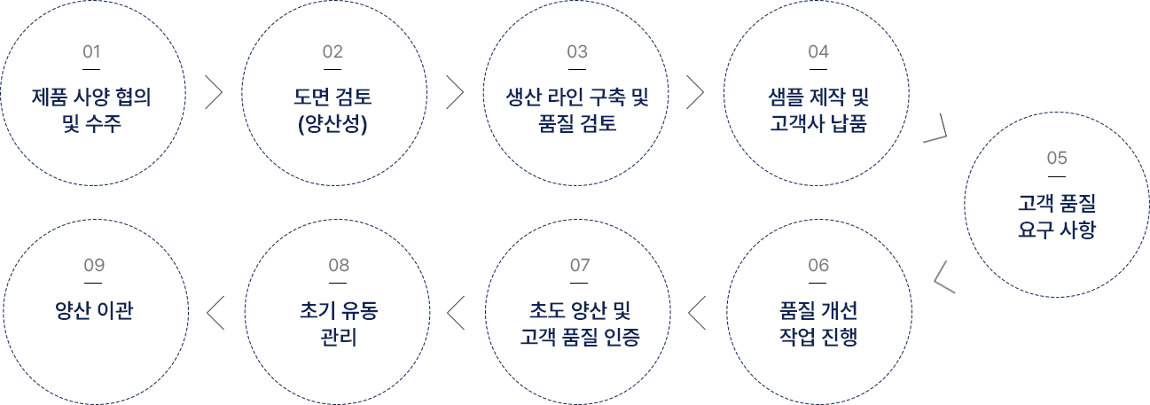 기술 연구소는 설계 검토, 사양 협의, 검증 지원, 양산 대응 등 다양한 단계에서 개발적이고 유연한 기술 협업 체계를 운영하고 있으며 공동 기술 개발 및 품질 개선 활동을 통해 파트너와 함께 성장하는 기술 생태계를 만들어가고 있습니다